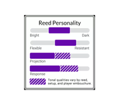 All reeds are made to an initial aperture between 0.68-0.72 mm, but this will change after the reed is played. The total length of the reed is 69.8-70.2 mm and it plays at 440-442 Hz depending on the positioning in the reed well. They never need to be soaked and are unaffected by any weather or humidity.