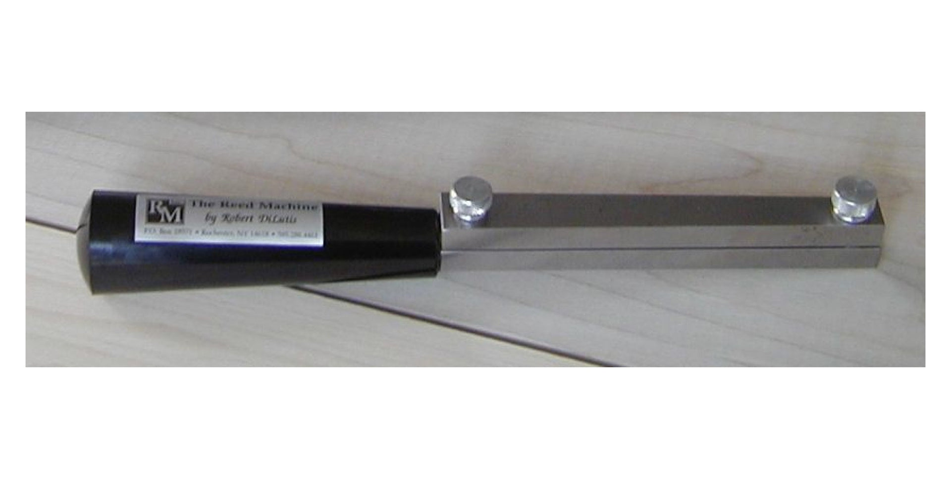 The New 2012 Reed Machine Reed Profiler is oil hardened and will not rust or wear. This tool shapes the side rails of the reed blank. It is made with a comfortable round, solid handle and steel. The even guide rails insure a perpendicular cut every time. The Profiler can be used with any utility or reed knife and is available for E-flat Clarinet, B-flat clarinet, Alto Saxophone and Bass Clarinet. Custom profilers can be ordered for no additional cost. Please contact us.